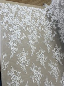 Tul bordado de estilo clásico con un diseño floral abundante y muy detallado. Los motivos están realizados en hilo blanco y realzados con cola de ratón, lo que aporta volumen, definición y un acabado más marcado al relieve del bordado. La parte superior incorpora un borde floral más denso y ornamental, mientras que el resto del tejido presenta flores y hojas distribuidas de forma armoniosa. Sobre base nude, el dibujo destaca con delicadeza y un aire romántico. Ideal para vestidos de novia tradicionales, cuerpos, faldas y mangas que buscan un acabado elegante y refinado.